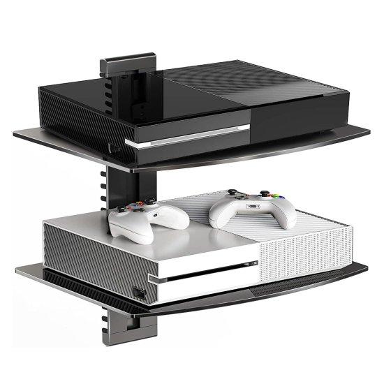 Modern Ahşap İki Katlı Oyun Konsolu Duvar Rafı