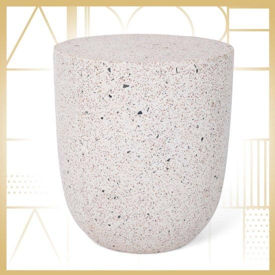 Modern Krem Rengi Terrazzo Desenli İç ve Dış Mekan Yan Sehpa