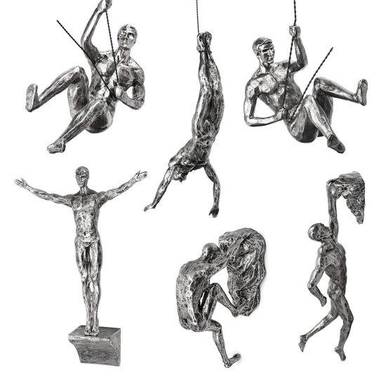 Set içerisinde farklı pozisyonlarda tırmanan, atlayan ve hareket halindeki insan figürleri bulunur. Bu çeşitlilik, duvarda canlı ve hareketli bir görünüm yaratır. Figürler arasında metal tel kordonla asılı olanlar, havada süzülüyor izlenimi verir ve dekorasyona derinlik katar.