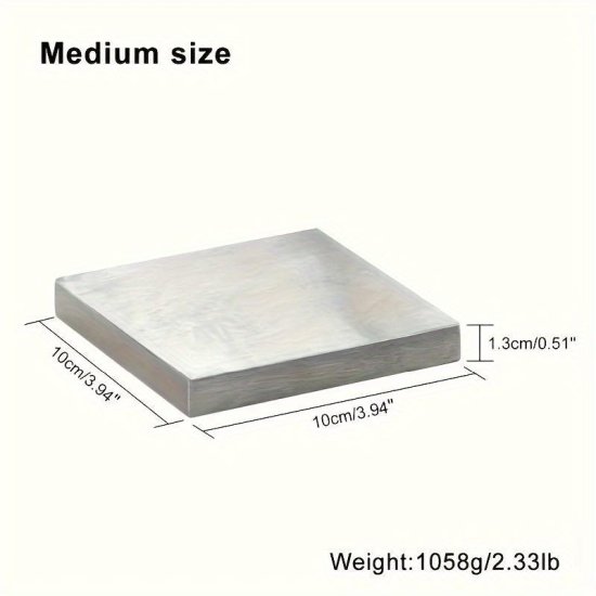 Bu demir alaşımlı ütü tabanı, takı yapımcıları ve zanaatkarlar için oldukça kullanışlı bir aksesuar. Orta boy boyutları 10 cm genişliğinde ve 1,3 cm yüksekliğinde, toplam ağırlığı yaklaşık 1 kg olan bu ürün, dayanıklı çelik malzemeden üretilmiştir.