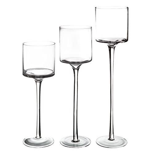 Modern Şeffaf Cam Uzun Ayaklı Dekoratif Mumluk Seti