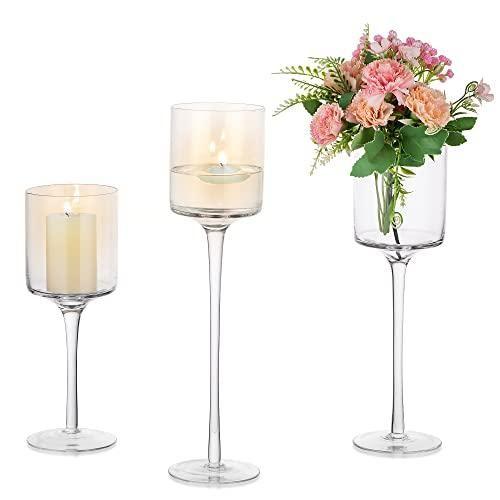 Zarif Uzun Ayaklı Çok Fonksiyonlu Cam Mumluk Seti
