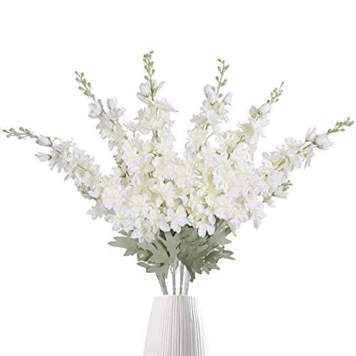 Beyaz Dokulu Uzun Yapay Delphinium Çiçek Demeti