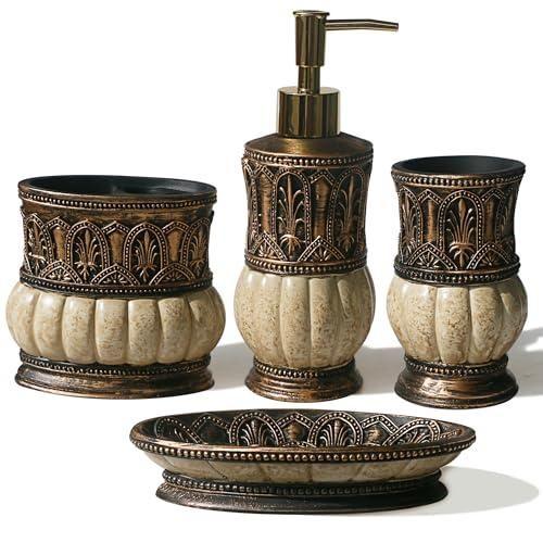 Antik Desenli Krem Bronz Vintage Banyo Seti