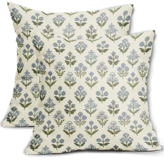 Bu kırlent kılıfları, geleneksel blok baskı tekniğiyle üretilmiş zarif bir dekoratif aksesuar seti. İnce çiçek desenleriyle kaplı kumaş, doğal ve yumuşak bir görünüm sunuyor. Açık mavi ve yeşil tonlarında desenler, modern ve rustik dekorasyon stillerine mükemmel uyum sağlıyor.