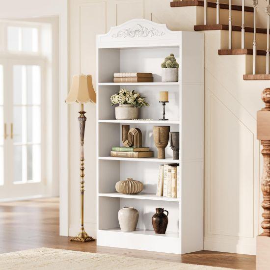 Kitaplığın yüzeyi mat ve pürüzsüz bir dokudadır. Beyaz rengi sayesinde ferah bir görünüm yaratır ve etrafındaki diğer mobilyalarla kolayca uyum sağlar. Üst kısmındaki hafif oymalı detay, ürüne klasik bir dokunuş getirir.