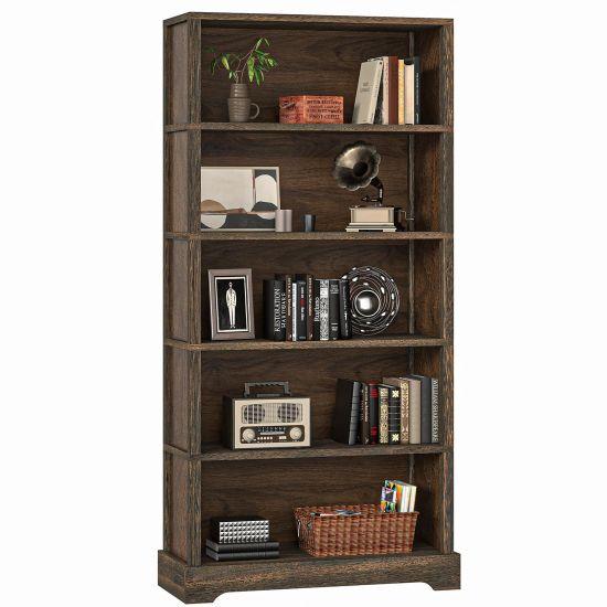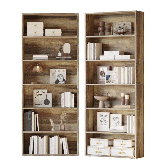 Modern ve vintage tarzı bir arada sunan bu kitaplık, endüstriyel ahşap tasarımıyla dikkat çekiyor. Koyu kahverengi tonlarında, ahşap dokulu yüzeyi ile sıcak bir görünüm sergileyen ürün, farklı boyutlardaki 6 bölmesiyle fazlasıyla depolama alanı sağlıyor.
