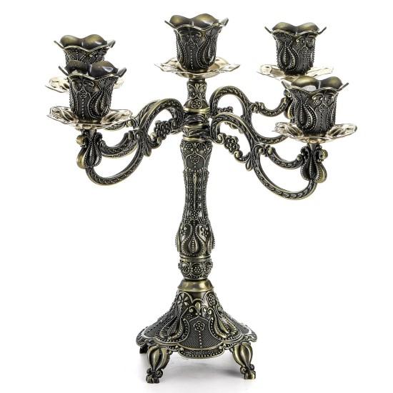 Bu zarif vintage mumluk, klasik bir ev dekorasyon parçası olarak öne çıkıyor. Detaylı işlemeli bronz görünümüyle dikkat çeken mumluk, 5 farklı mum için ideal bir aksesuar. Yaklaşık 25 cm yüksekliğinde olan ürün, antik bir görünüm sunuyor.