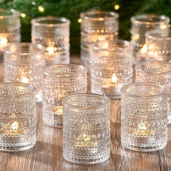 Bu zarif mumluk seti, ev dekorasyonunuz için şık ve çok yönlü bir aksesuar sunuyor. 24 adet şeffaf cam mumluktan oluşan set, vintage tarzı dokulu bir görünüme sahip. Her bir mumluk, ince işlenmiş detaylı desenlerle süslenmiş, ışığın çarpıcı bir şekilde yansımasını sağlıyor.