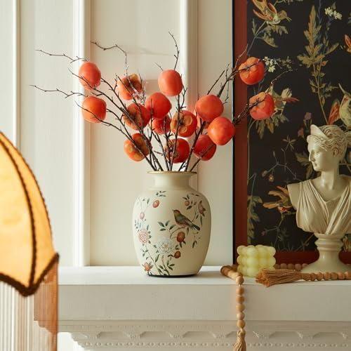 Bu dekoratif vazo, doğanın tüm güzelliğini ve zarafetini bir araya getiren benzersiz bir ev aksesuarıdır. Krem beyazı zemin üzerine el boyaması tekniğiyle işlenmiş zarif çiçek ve meyve desenleri, vazonun estetik değerini artırır.
