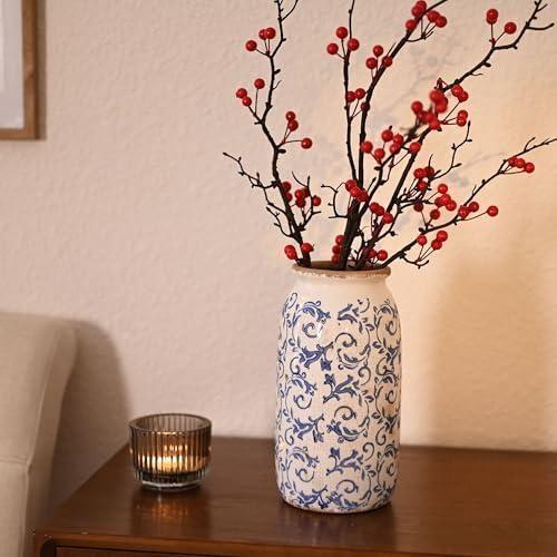 Bu dekoratif vazo, geleneksel Çin desenlerini modern bir yorumla birleştiren eşsiz bir aksesuar. Beyaz zemin üzerine mavi çiçek ve yaprak motifleriyle süslenmiş vazo, vintage dokusunu çatlak sır tekniğiyle tamamlıyor.