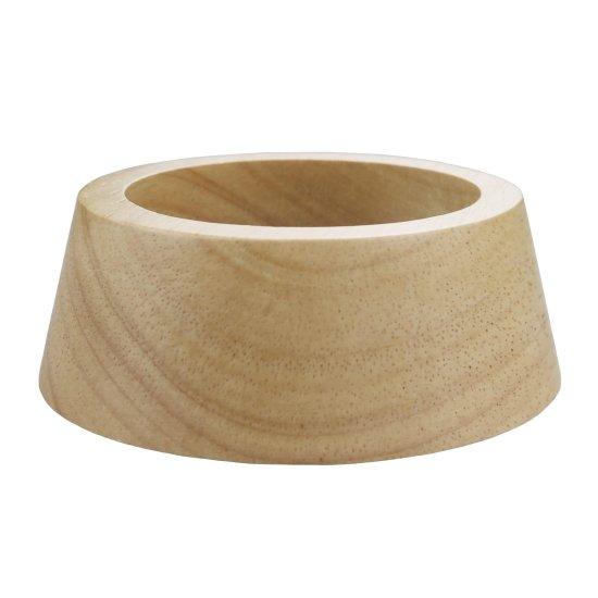 Ürünün yüzey dokusunda doğal ahşap desenleri net bir şekilde görülüyor. Mat ve pürüzsüz bir yüzeye sahip olan stand, yuvarlatılmış kenarları ve genişleyen alt kısmıyla estetik bir görünüm sunuyor.