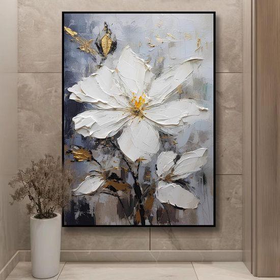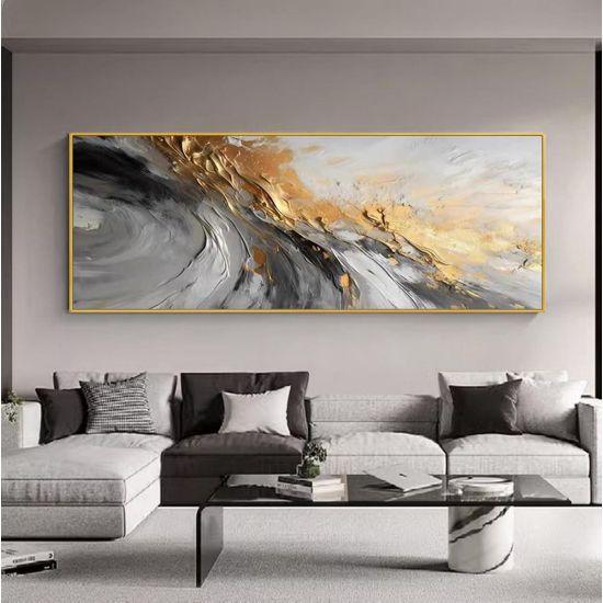 76 cm yüksekliğinde ve 102 cm genişliğindeki bu etkileyici eser, doğal ahşap çerçeve üzerine elle gerilmiştir. Bu özellik, tabloya ekstra bir derinlik ve doku katıyor.