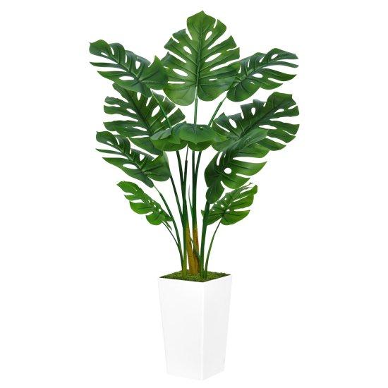 Beyaz Saksılı Yeşil Yapay Monstera Kat Bitkisi