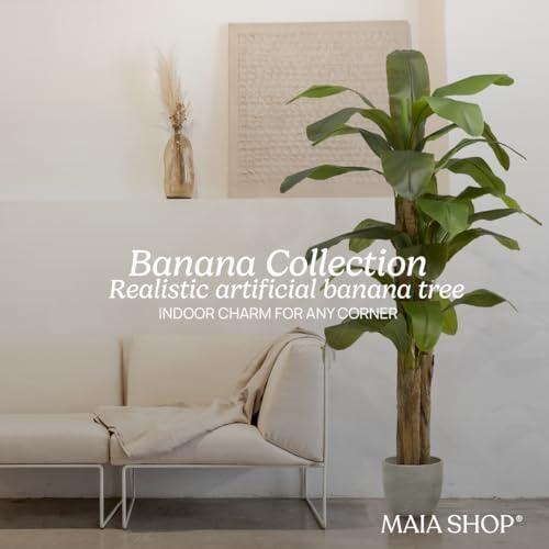 Evinizin veya ofisinizin herhangi bir köşesine tropikal bir dokunuş katacak şık bir dekoratif aksesuar karşınızda. Bu yapay muz ağacı, doğal bir muz bitkisinin tüm detaylarını kusursuz bir şekilde yansıtır.