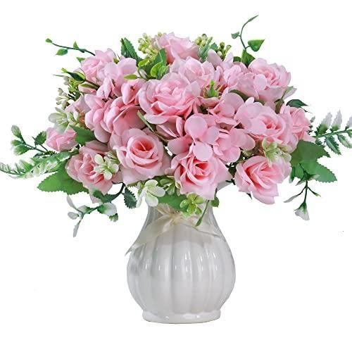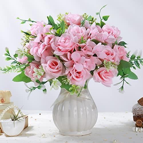 Bu dekoratif aksesuar, doğallığıyla göz kamaştıran bir yapay çiçek aranjmanıdır. Yumuşak pembe tonlarında hazırlanmış çiçekler, zarif bir seramik vazoda bir araya getirilmiştir.