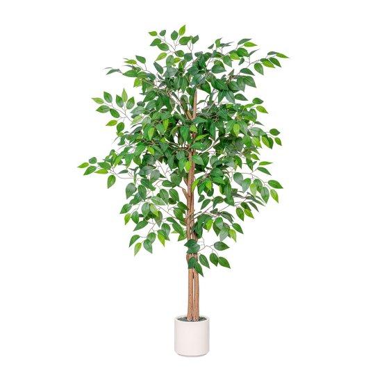 Ürün, yumuşak dokulu ipek kumaştan üretilmiş yapay yapraklara sahiptir. Mat ve hafif parlak yüzeyi, doğal bir görünüm sağlar. Beyaz renkte seramik bir saksı içinde sunulan ağaç, minimal ve şık tasarımıyla her ortama uyum sağlar.