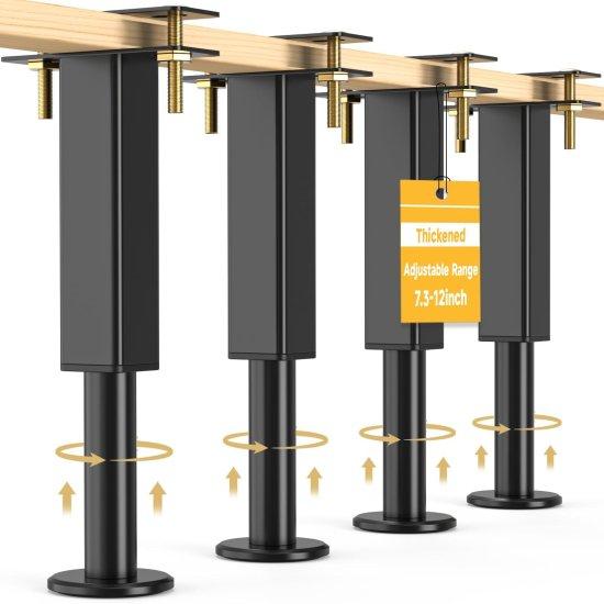 Ayarlanabilir Yükseklik Siyah Metal Yatak Ayağı Seti