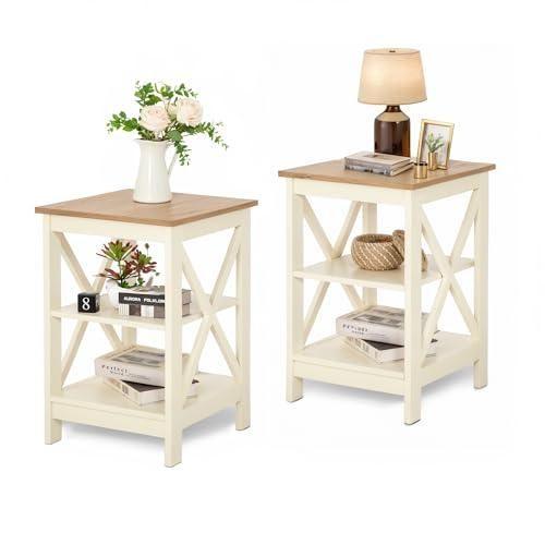 Krem Ahşap X Detaylı Yatak Odası Sehpası