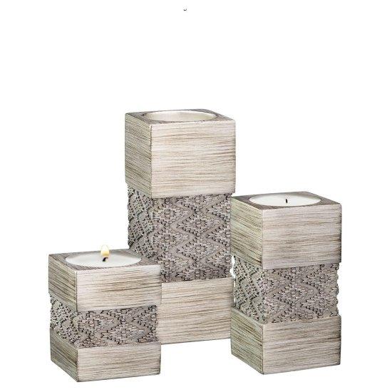Doğal Taş Dokulu Üç Parça Tealight Mumluk Seti
