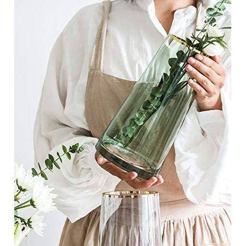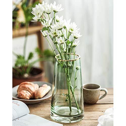Vazonun üst kenarında ince bir altın çizgi bulunmakta, bu detay ürüne sofistike bir görünüm kazandırıyor. Açık yeşil renkteki cam, yumuşak ve şık bir ton sergiliyor. Tamamen şeffaf olan vazo içindeki çiçeklerin veya bitkilerin net bir şekilde görünmesine olanak sağlıyor.