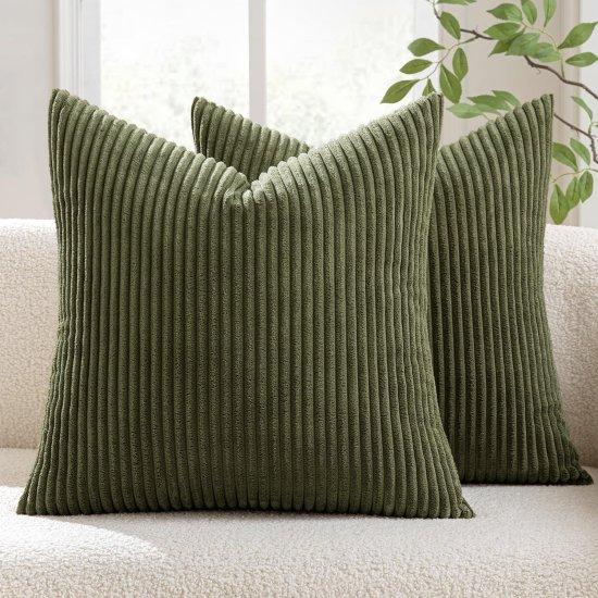 Yumuşacık Dokulu Zeytin Yeşili Kırlent Kılıfı Seti