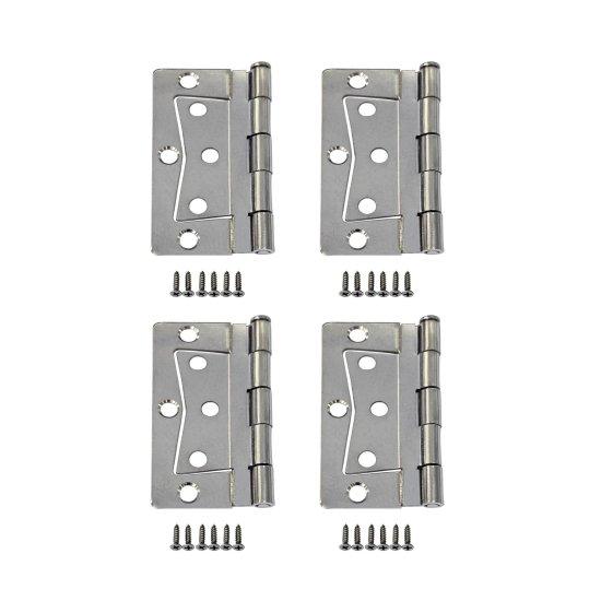 Her bir menteşe, kolay montaj için gerekli vidaları içerir. Vida sayısı ve menteşe boyutları, farklı kapı ve dolap sistemlerine uyum sağlayacak şekilde tasarlanmıştır. Yönsüz (non-mortise) özelliği, karmaşık montaj gerektirmeden hızlı ve basit bir kurulum imkanı sunar.
