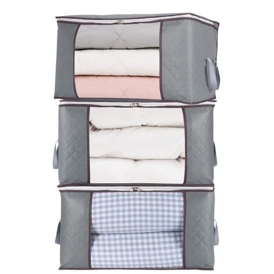 Gri Renkli Ekstra Geniş Yorgan Saklama Çantası Seti