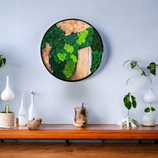 Evinizin içinde bile doğayla bağlantı kurmanızı sağlayan bu yosun tablosu, boşluk bırakmayan yoğun yapısıyla dikkat çekiyor. Gerçekçi görünümüyle yaşam alanlarınıza özgün bir dokunuş katıyor.