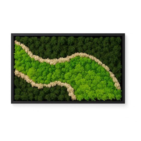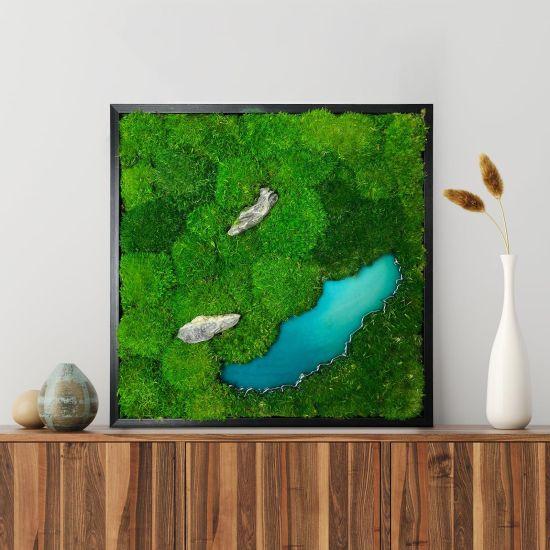 Bakım gerektirmeyen, tamamen doğal yosunlarla hazırlanmış bu duvar tablosu, evinize doğanın huzurunu taşıyor. 50×35 cm boyutlarındaki tabloda gerçek korunmuş yosunlar kullanılmıştır. Şık siyah çerçevesi ile modern dekorasyonlara mükemmel uyum sağlar.