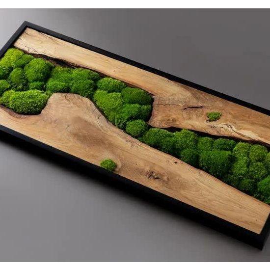Doğayı evinize taşıyın! Doğal korunmuş yosun ve rustik sedir ağacı kullanılarak hazırlanan bu tablo, yaşam alanlarınıza huzur verici bir güzellik katıyor. Oturma odanızda, yatak odanızda, banyonuzda veya ofisinizde doğanın sakinliğini hissedeceğiniz bir atmosfer yaratır.