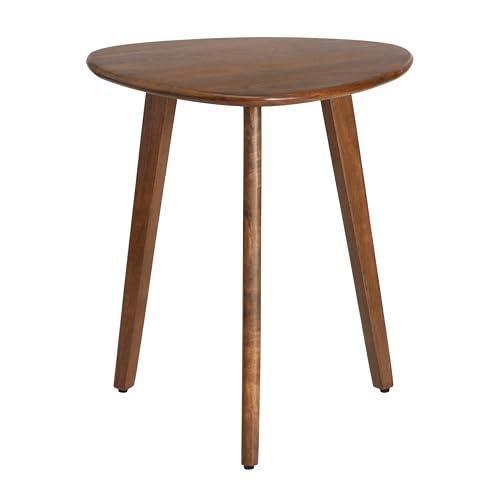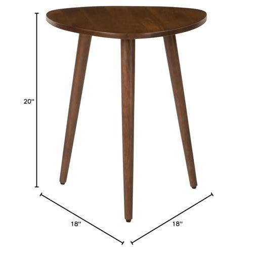 Bu dekoratif ürün, modern ve minimalist tasarımıyla dikkat çeken bir yan sehpadır. Koyu kahverengi ahşaptan üretilen sehpa, üçgen formunda yuvarlatılmış bir tablaya sahiptir. Ahşabın doğal dokusu ve sıcak rengi, ürüne zarif bir görünüm kazandırır.