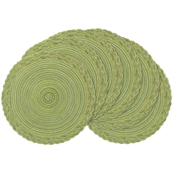 Doğal ve şık bir sofra deneyimi için tasarlanan bu yuvarlak amerikan servis seti, evinizin dekoratif aksesuar koleksiyonuna zarafet katacak. Yumuşak yeşil tonlarında üretilen setimiz, dokuz adet yuvarlak servis altlığından oluşmaktadır.