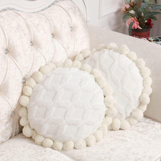 El Yapımı Ponponlu Krem Beyaz Yuvarlak Kırlent Kılıfı Seti