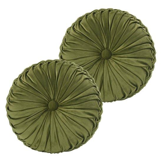 Zarif Olive Yeşili Pilili Yuvarlak Kırlent Seti